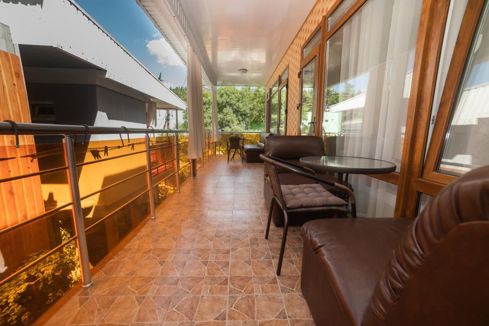 | Двуспальная кровать, шкаф, стулья, прикроватные тумбочки, стол, терраса с мебелью у входа в номер, Wi-Fi |