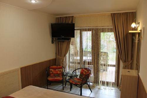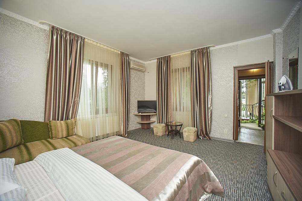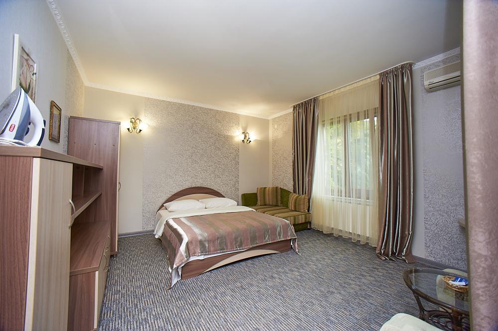 | Номер рассчитан на проживание 2-х человек + 1 доп место для ребенка. Комната оборудована всем самым необходимым: LCD-телевизор (спутниковое телевидение), кондиционер, холодильник, электрочайник, микроволновая печь, набор посуды, душ (холодная/горячая вода круглосуточно), туалет, фен, WI-FI интернет, сейф. На балконе стол со стульями. С балкона панорамный вид на море и парк санатория. Уборка комнаты производится 3 раза в неделю. Замена постельного белья – через 5 дней. |