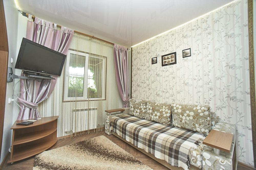 | Двухкомнатное улучшенное помещение с раздельными комнатами рассчитано на проживание 4-5и человек. Комнаты оборудованы всем самым необходимым: 2 LCD-телевизора (спутниковое телевидение), 2 кондиционера, холодильник, электрочайник, микроволновая печь, набор посуды, душ (холодная/горячая вода круглосуточно), туалет, фен, WI-FI интернет, сейф. На балконе (с видом на море) стол со стульями. Уборка комнат производится 3 раза в неделю. Замена постельного белья – через 5 дней. |