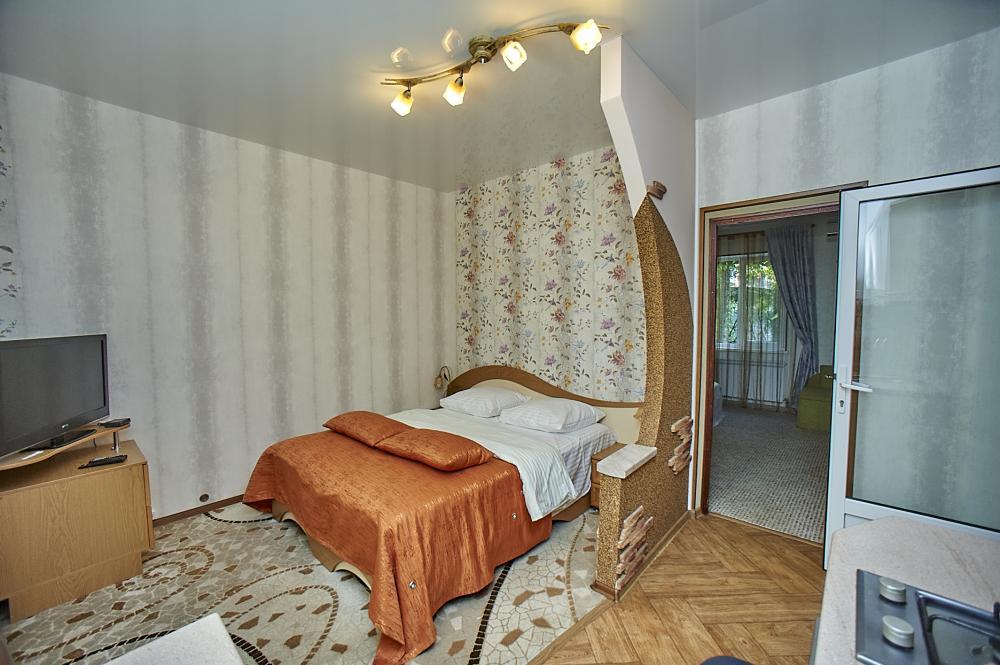 | Двухкомнатный номер с кухней рассчитан на проживание до 4-х человек. Комнаты смежные, есть кухня для приготовления пищи. Комнаты оборудованы всем самым необходимым: 2 LCD-телевизора (спутниковое телевидение), кондиционер, холодильник, электрочайник, микроволновая печь, набор посуды, душ (холодная/горячая вода круглосуточно), туалет, фен, WI-FI интернет, сейф. На уютном балконе (с видом на море) стол со стульями. Уборка комнат производится 3 раза в неделю. Замена постельного белья – через 5 дней. |