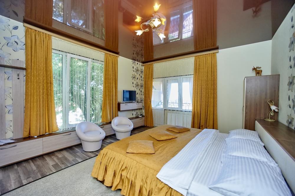 | Комната рассчитана на проживание 2-х человек с возможностью дополнительного места для ребенка. Комнаты оборудованы всем самым необходимым: телевизор (спутниковое телевидение), кондиционер, холодильник, электрочайник, набор посуды, душ (холодная/горячая вода круглосуточно), туалет, фен, WI-FI интернет. На уютном балконе стол со стульями. Вид с балконов 2-го этажа – на парк санатория, с 3-го – на море и парк санатория. Уборка комнат производится 3 раза в неделю. Замена постельного белья – через 5 дней. |