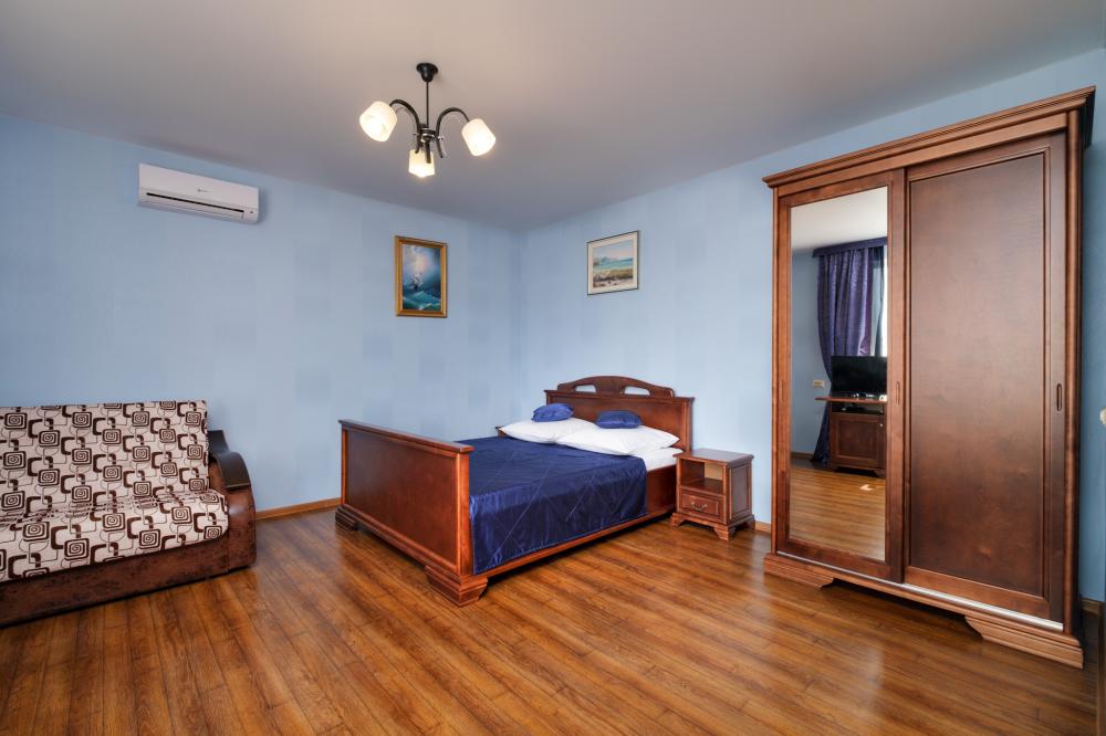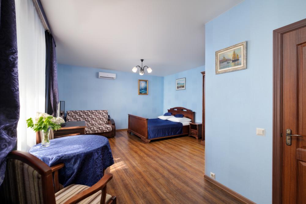 | Самая просторная комната площадью 35 м² с видом на море — удобный вариант для комфортного отдыха семьи у моря. Две отдельные комнаты позволяют отдыхать без тесноты: родители и дети могут разместиться отдельно, сохраняя комфорт и личное пространство. Номер особенно удобен для семей с детьми и подходит для длительного проживания. В распоряжении гостей удобная двуспальная кровать и дополнительные спальные места для детей, кондиционер, телевизор, холодильник, бесплатный Wi-Fi и собственный санузел. Из окон и с балкона открывается приятный вид на море и во двор. После пляжа приятно вернуться в прохладный номер, отдохнуть и провести вечер в спокойной, уютной атмосфере. В доме представлен только один такой номер, поэтому его часто бронируют заранее семьи, планирующие отдых у моря. Номер рассчитан на размещение до 5 человек и оптимально подходит для семьи: двое взрослых и дети. Формат проживания ориентирован на спокойный семейный отдых. Гости чувствуют себя комфортно уже с первых минут заселения и многие из них возвращаются к нам снова. Информация: Количество: 1 Размещение: до 5 гостей (семейный формат) Расположение: 2 этаж Оснащение: Площадь - 35 м² Вид на море Бесплатный Wi-Fi Балкон Сейф Телевизор с кабельными каналами Кондиционер Шкаф и места для хранения вещей Двуспальная кровать Двухъярусная кровать Кресло-кровать Стол и полукресла Вешалка для одежды Холодильник Фен Полотенца |