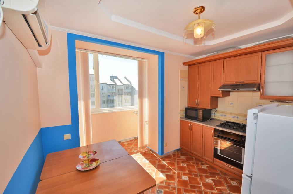Сдается новая трехкомнатная квартира со всеми удобствами. В квартире 7 спальных мест, все комнаты раздельные. Есть два телевизора, кабельное ТВ, DVD плеер, кондиционеры, WI-FI с безлимитным интернетом. Постельное белье и полотенца выдаются бесплатно. На кухне - необходимая посуда, электроплита, микроволновка, холодильник, электрочайник. Санузел совмещенный, горячая и холодная вода круглосуточно, есть стиральная машинка, фен, утюг и гладильная доска. В квартире есть балкон и просторная лоджия. До моря пешком 5-7 минут. Во дворе парковка для авто, детская площадка, тренажеры и магазины. Рядом рынок, аквапарк.