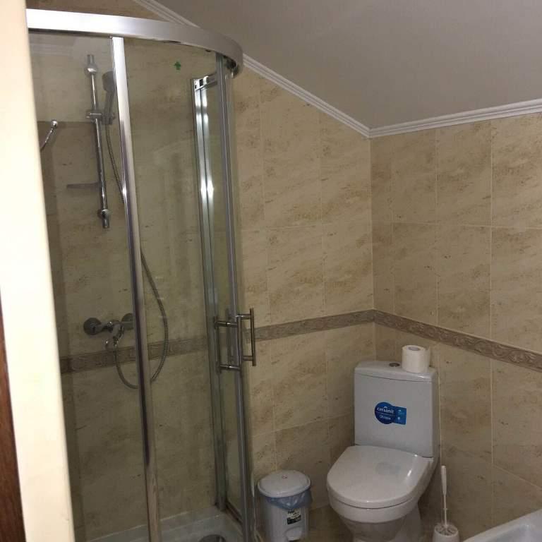 | Отдельно стоящий 2-х этажных дом. Номер на 1м этаже с собственной зоной отдыха: беседка, мангал. Номер на 2м этаже с видом на море, балкон 20м2, мебель, отдельный вход. Номер 80 м2, трёх комнатный: кухня-гостиная с полным набором посуды, свч, электроплита, чайник, 2х камерный холодильник, обеденный стол, кондиционер, smart TV, угловой раскладывающихся диван, шкаф-купе. Две спальни: в одной 2х спальная кровать, в другой две односпальные. Санузел: унитаз, биде, умывальник, душ, шкаф, фен, гигиенические принадлежности, полотенца, халаты. |