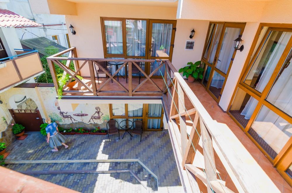 В частном доме «Уютный дворик» сдается 11 уютных 2-х местных комнат (доп мест нет). В каждой комнате: большая двуспальная кровать, шкаф, журнальный столик, зеркало, телевизор, интернет, кондиционер, холодильник, бокалы, санузел/душ, банные полотенца, горячая и холодная вода круглосуточно. Какой именно номер и на каком этаже заранее сказать невозможно. С детьми старше 10 лет. С животными не принимаем. На территории дома имеется кухонная зона, которая оборудована микроволновой печью, чайником и необходимой посудой. Плиты и мангала нет. Курение строго в определенном месте. Стирка белья за дополнительную плату. Гладильная доска, утюг, фен в зоне общего пользования. Парковка общественная, бесплатная возле дома (при наличии мест). Недалеко от дома есть платная. До моря и Центральной набережной 500 метров по прямой дороге. В шаговой доступности находится магазин первой необходимости, супермаркет пуд, ресторан Старый город, дельфинарий, троллейбусное кольцо, автовокзал.