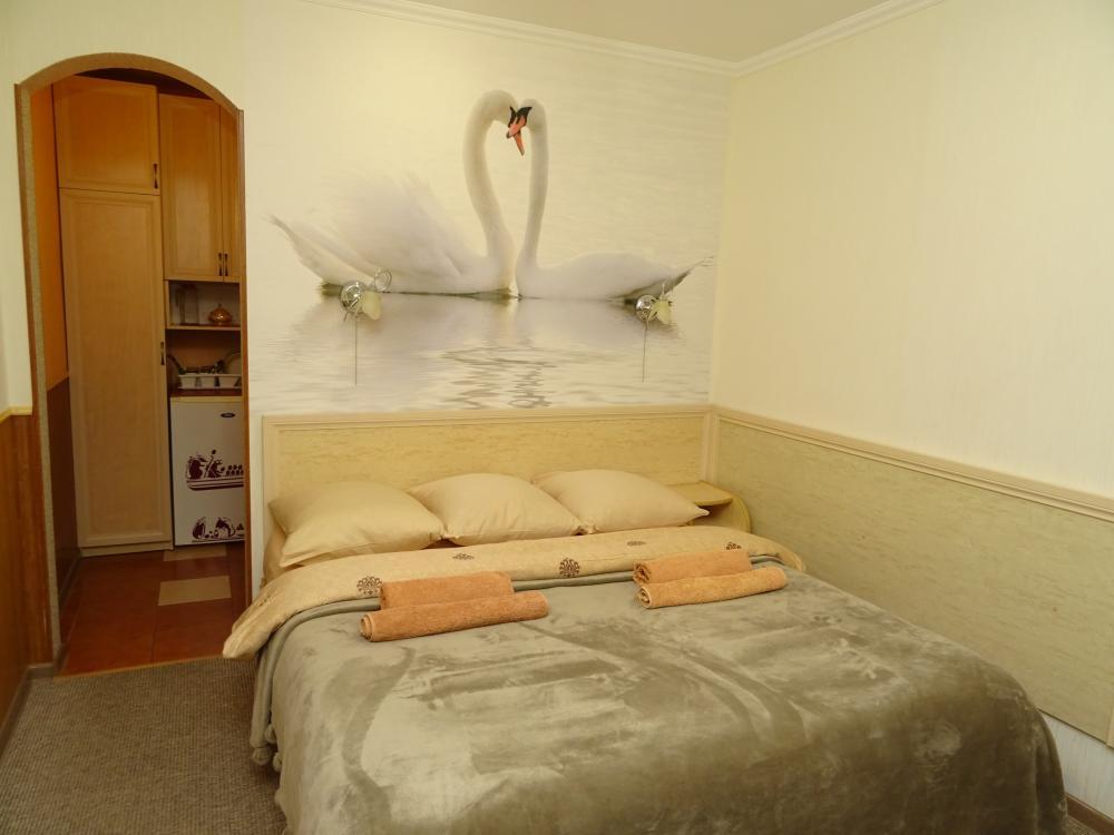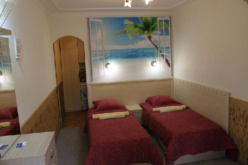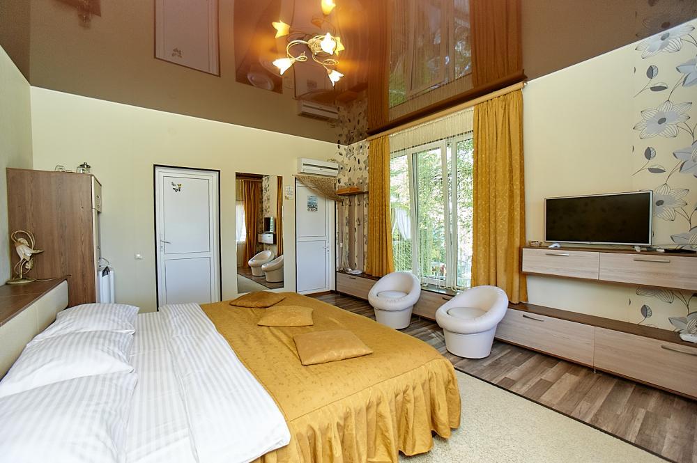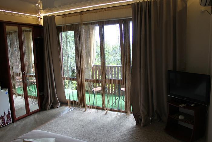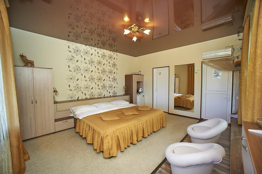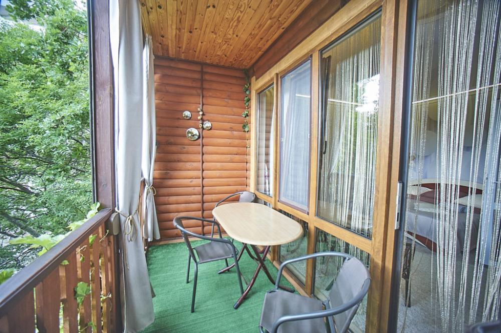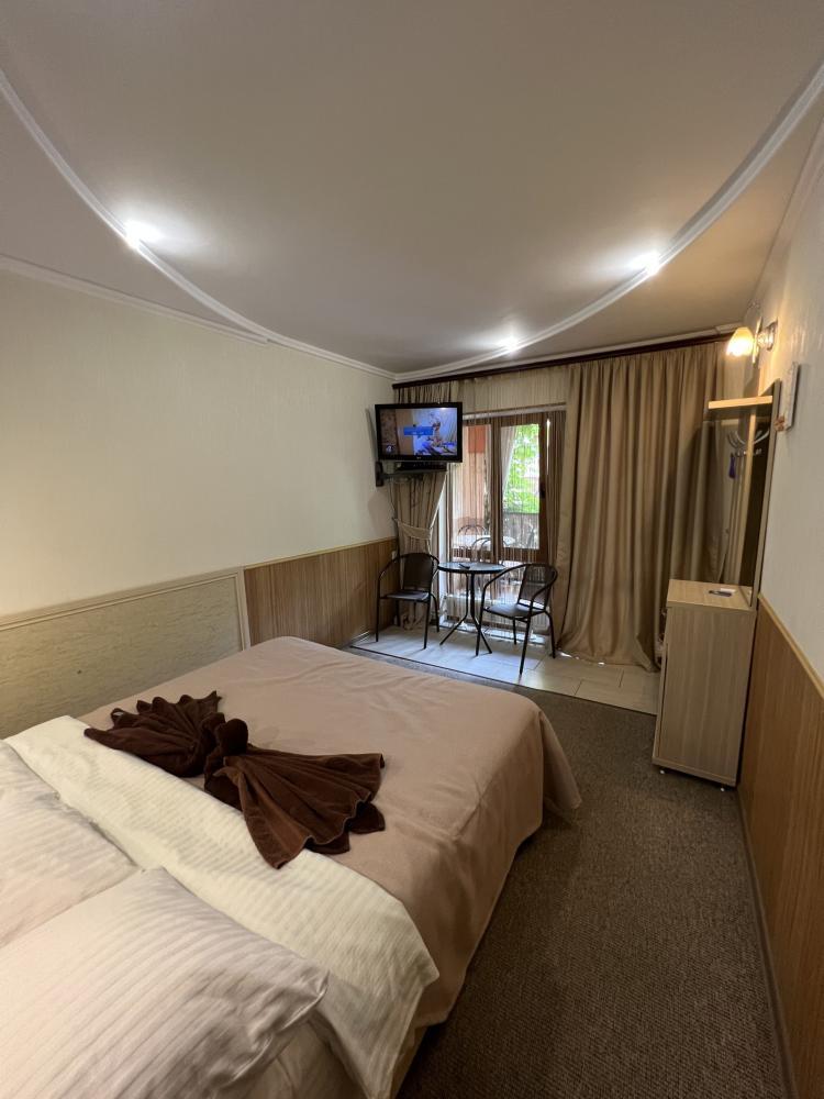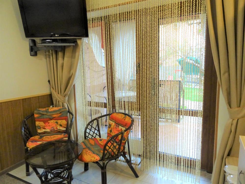 | Двухместный «Стандарт» рассчитан на проживание двух человек с возможностью дополнительного места. Комната оборудована всем самым необходимым: телевизор (спутниковое телевидение), кондиционер, холодильник, электрочайник, набор посуды, душ (холодная/горячая вода круглосуточно), туалет, фен, WI-FI интернет. На уютном балконе с видом на сад есть стол со стульями. Уборка номеров производится 3 раза в неделю. Замена постельного белья – через 5 дней. |