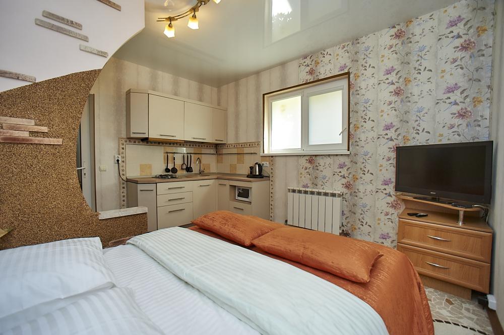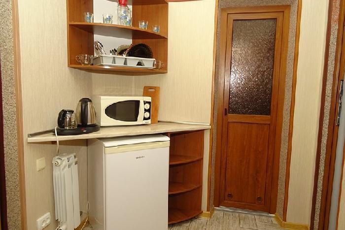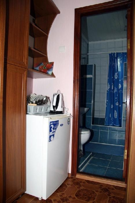 | Двухкомнатный номер с кухней рассчитан на проживание до 4-х человек. Комнаты смежные, есть кухня для приготовления пищи. Комнаты оборудованы всем самым необходимым: 2 LCD-телевизора (спутниковое телевидение), кондиционер, холодильник, электрочайник, микроволновая печь, набор посуды, душ (холодная/горячая вода круглосуточно), туалет, фен, WI-FI интернет, сейф. На уютном балконе (с видом на море) стол со стульями. Уборка комнат производится 3 раза в неделю. Замена постельного белья – через 5 дней. |