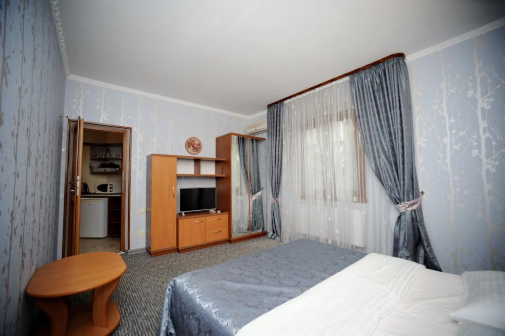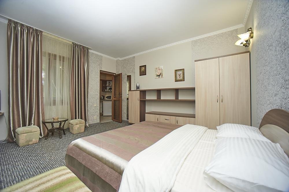 | Комната рассчитана на проживание 2-х человек с возможностью дополнительного места для ребенка. Комнаты оборудованы всем самым необходимым: телевизор (спутниковое телевидение), кондиционер, холодильник, электрочайник, набор посуды, душ (холодная/горячая вода круглосуточно), туалет, фен, WI-FI интернет. На уютном балконе стол со стульями. Вид с балконов 2-го этажа – на парк санатория, с 3-го – на море и парк санатория. Уборка комнат производится 3 раза в неделю. Замена постельного белья – через 5 дней. |