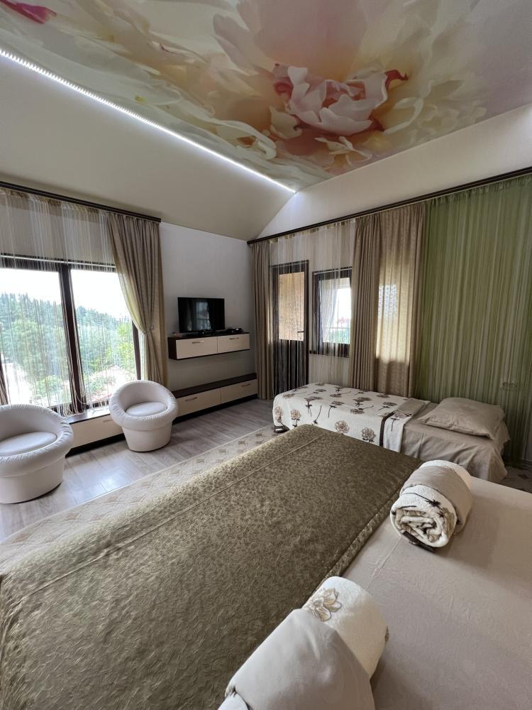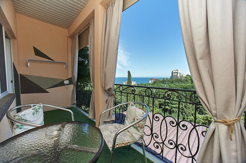 Вилла «Гармония» в г. Алушта расположена в парковой зоне «Профессорского уголка». До моря 400 метров. Для гостей на территории предоставлены качели и шезлонги для отдыха, мангал для шашлыка. На территории есть три укомплектованные кухни общего пользования для самостоятельного приготовления пищи. Есть кухня с поваром, где можно заказывать еду. В доме комнаты 1-2 комнатные разной категории со всеми удобствами. WI-FI Интернет в каждом номере. Современная мебель. В каждом номере есть свой балкон с видом на море или сад. В комнатах все удобства: горячая вода круглосуточно, душ, туалет, телевизор, холодильник, спутниковое телевидение, кондиционеры. Детская площадка. Парковка платная. Окружение Гармонии составляет парковая зона санатория «Алушта», а так же сосновые деревья, которые создают благодатный целебный воздух. На территории санатория платный бассейн. Дом расположен в 500 метрах от аквапарка, Медикал спа-центра, в 100 метрах от боулинг-центра. В 200 метрах находятся магазины, кафе, продуктовый рынок. По набережной 20 минут ходьбы до центра Алушты. Возможен платный трансфер.