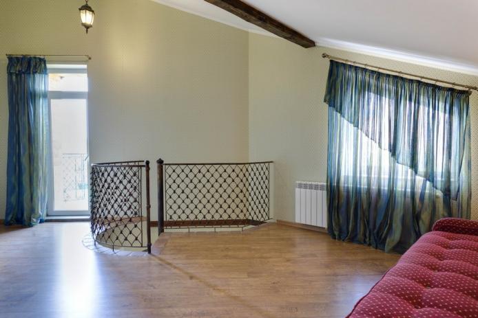 | Прихожая, ванная комната, зал с раскладным диваном и двумя креслами. На втором уровне комната с двуспальной или двумя односпальными кроватями. |