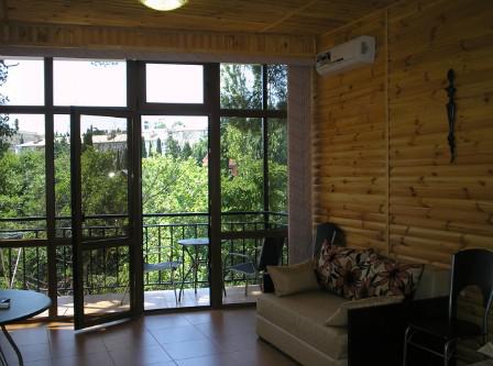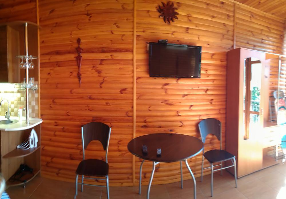 | Двуспальная кровать и кресло кровать, вешалка, теплый пол, комод, гладильная доска, утюг, мини-кухня, две газовые конфорки, вытяжка, электрочайник, мойка для посуды, посуда, WI-FI. Номера находятся на первом этаже. Есть дворик: столик, кресла, сушилка для белья у каждого номера свои |