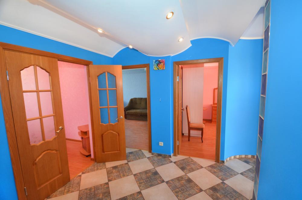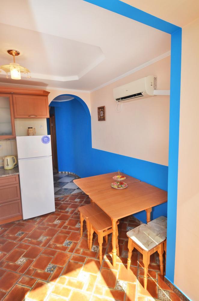 Сдается новая трехкомнатная квартира со всеми удобствами. В квартире 7 спальных мест, все комнаты раздельные. Есть два телевизора, кабельное ТВ, DVD плеер, кондиционеры, WI-FI с безлимитным интернетом. Постельное белье и полотенца выдаются бесплатно. На кухне - необходимая посуда, электроплита, микроволновка, холодильник, электрочайник. Санузел совмещенный, горячая и холодная вода круглосуточно, есть стиральная машинка, фен, утюг и гладильная доска. В квартире есть балкон и просторная лоджия. До моря пешком 5-7 минут. Во дворе парковка для авто, детская площадка, тренажеры и магазины. Рядом рынок, аквапарк.
