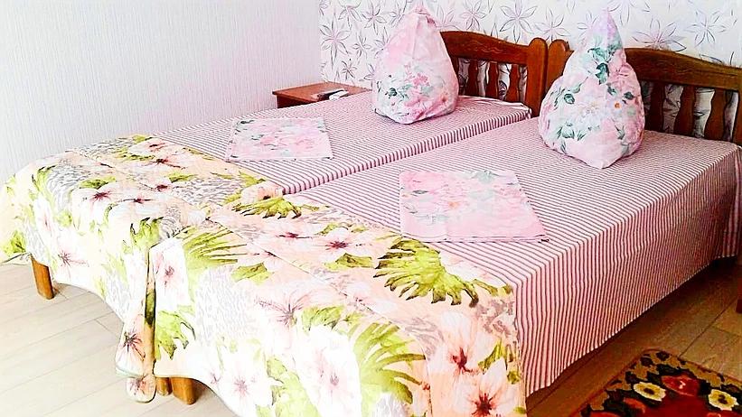 | Доступны 3 номера. В номере: 3 односпальные кровати или 2 односпальные кровати и раскладывающийся диван, шкаф для одежды, вешалка, зеркало, прикроватные тумбочки, Wi-Fi. Для данных номеров отдельный вход, а также общая кухня (на 3 номера), на которой есть: плита, посуда, 2 холодильника, 3 обеденных стола на свежем воздухе, ТВ, гладильная доска и утюг. Кухня оборудована всем необходимым для приготовления и приема пищи. Возле номеров - обеденные столы для приема пищи и отдыха на свежем воздухе. Доп место - 400 рублей |