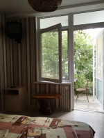| Доступны 2 номера. Двухспальная кровать, зеркало, прикроватные тумбочки, Wi-Fi. Для 2-ух данных номеров отдельный вход, а также кухня, на которой есть: плита, посуда, обеденный стол, гладильная доска и утюг. Кухня оборудована всем необходимым для приготовления и приема пищи. Возле кухни - обеденный стол для приема пищи и отдыха на свежем воздухе |