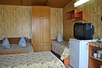 | Номер находится на 1-м этаже В номере есть холодильник, вентилятор, телевизор со спутниковыми каналами, шкаф, две односпальных кровати. Вид во двор. |