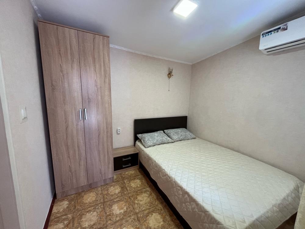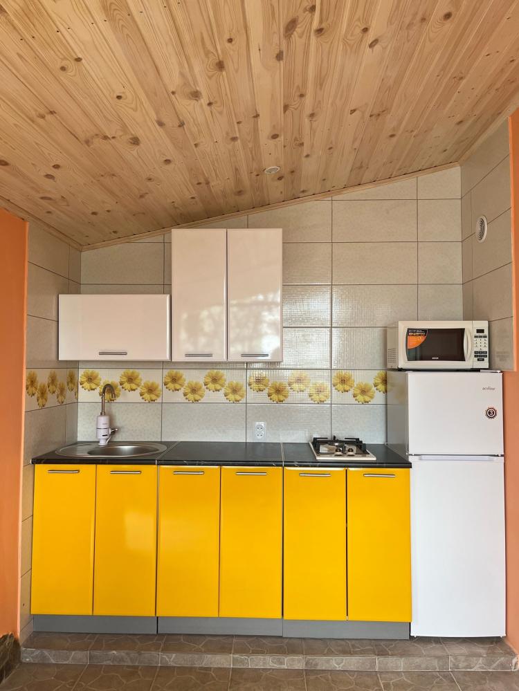 | Комната на 2-3 человека. Рассчитан на семью 2 взрослых и ребёнок. Своя кухня (посуда, микроволновка, газовая плита, холодильник, место для отдыха, беседка-столик и стулья). В комнате большой шкаф, журнальный столик, утюг, фен, телевизор (кабельное ТВ-25 каналов), интернет, двуспальный диван, односпальная кровать, вентилятор, ремонт, мебель новая, санузел в вашем номере. Сантехника новая, вода круглосуточно, бойлер, душевая кабинка. Постельное бельё, полотенца. Предоставляем постельное бельё, полотенца, тёплые одеяла, подстилка для моря. Из комнаты видно море. Вход отдельный, изолированный, вокруг беседка из винограда. Кухня личного пользования, полузакрытая, вы можете готовить и кушать на улице, на свежем воздухе, в то же время не бояться дождя и солнца. Для маленьких детей есть песочница и качели. Во дворе есть общая площадка с мангалами и столиками. |
