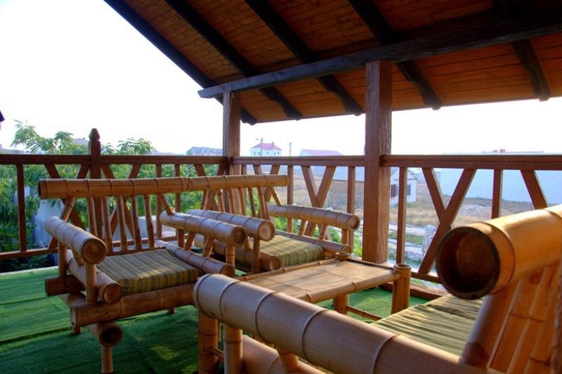 | Двуспальная кровать, диван-кровать, шкаф, стулья, прикроватные тумбочки, журнальный столик, вешалка, зеркало, балкон с бамбуковой мебелью с видом на море и закат (24 м2), отдельный вход |