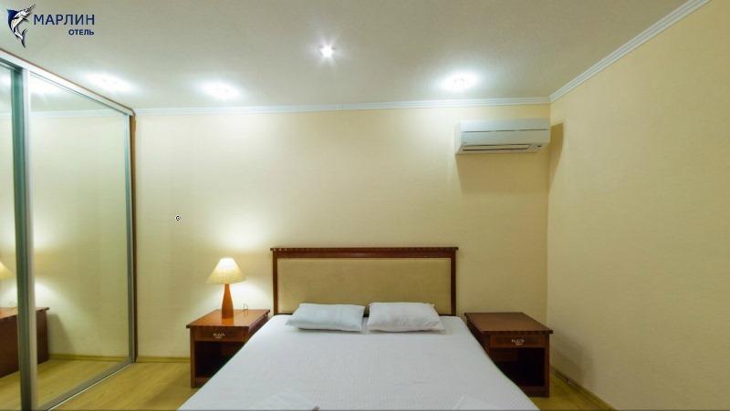 Отель «Марлин» в Оленевке расположен в 15 минутах от моря. Курорт знаменит кристально чистой и прозрачной водой, а также километрами белоснежных песчаных пляжей. К размещению гостей в номерах, расположенных в 2-х и 3-х этажном корпусах номера однокомнатные, двухкомнатные и апартаменты со всеми удобствами. На территории отеля работает ресторан. Также в распоряжении отдыхающих шезлонги, прикрытые от палящего солнца тканевыми зонтами. На территории бассейн, джакузи, игровая площадка для детей, парковка, WI-FI.