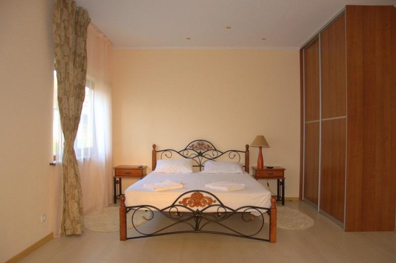 | Шкаф-купе, большая двуспальная кровать с ортопедическим матрацем (итальянская мебель), раскладывающийся угловой диван, кофейный столик, туалетный стол с большим зеркалом, два больших LCD-телевизора с лучшими каналами кабельного телевидения. Студия кухня с полным набором посуды и всего необходимого, обеденный стол, стулья, двухкамерный холодильник. Уборка в номере по требованию, смена постельного белья 1 раз в 5 суток |