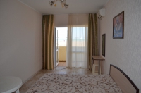 | В номере: | душ, туалет, умывальник, горячая вода, кондиционер, балкон, мягкая мебель, телевизор, холодильник, вид на море |