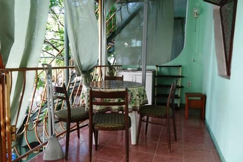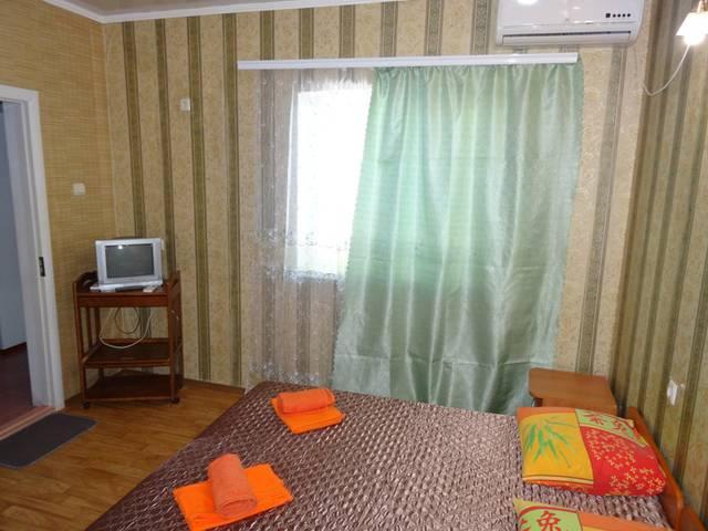 Гостевой дом «Зеленый дом» находится рядом с песчаным пляжем на территории базы отдыха «Прибой» в городе Саки. До центра развлечений, магазинов, столовых, ресторанов, рынка, остановки пару минут ходьбы. До центра города и аквапарка 15 минут езды на автомобиле. Пешком можно добраться до соленого озера. В гостевом доме есть 1, 2х, 3х комнатные номера и двухуровневый со всеми удобствами. Готовить можно на мини-кухне с индукционными плитами и необходимой посудой бесплатно, рядом есть кафе. Территория гостевого дома огорожена и укутана зеленью. Здесь имеется зона для отдыха, в которой размещена беседка и предоставляется мангал. Бронирование по телефону или на e-mail, предоплата 20% от стоимости проживания.