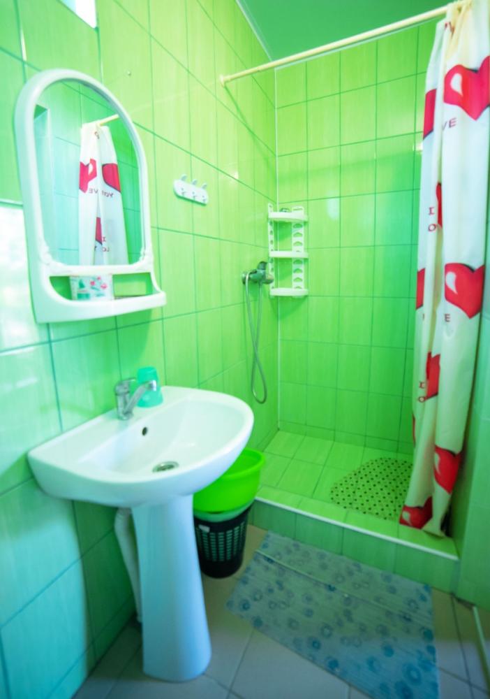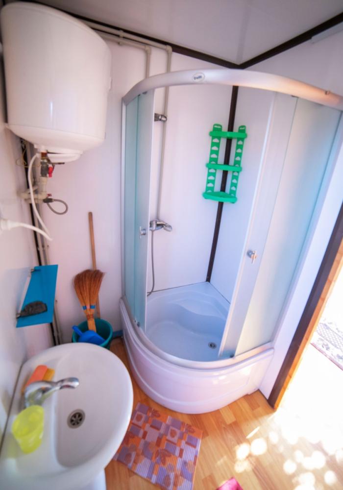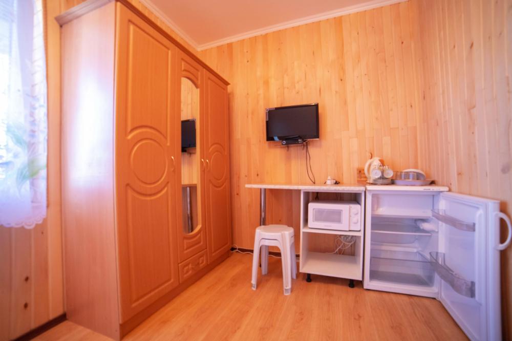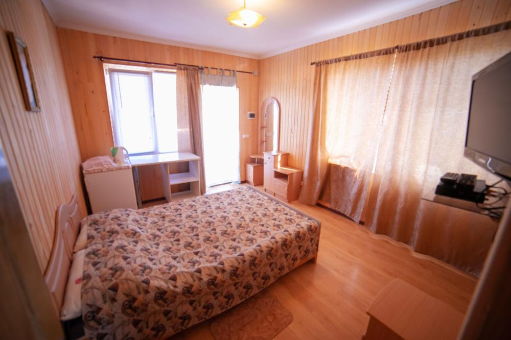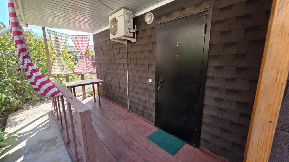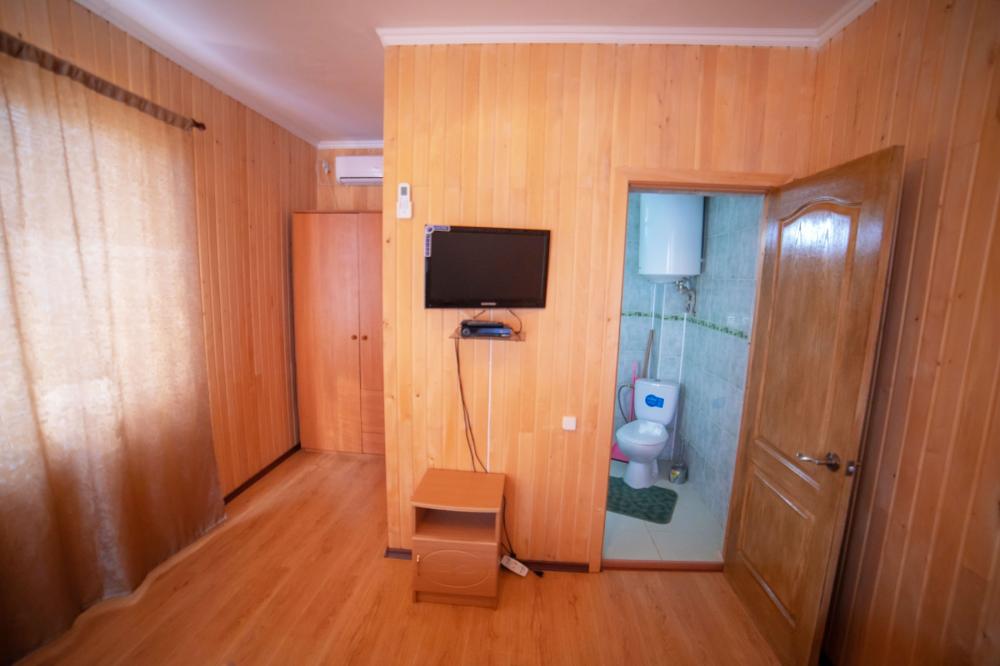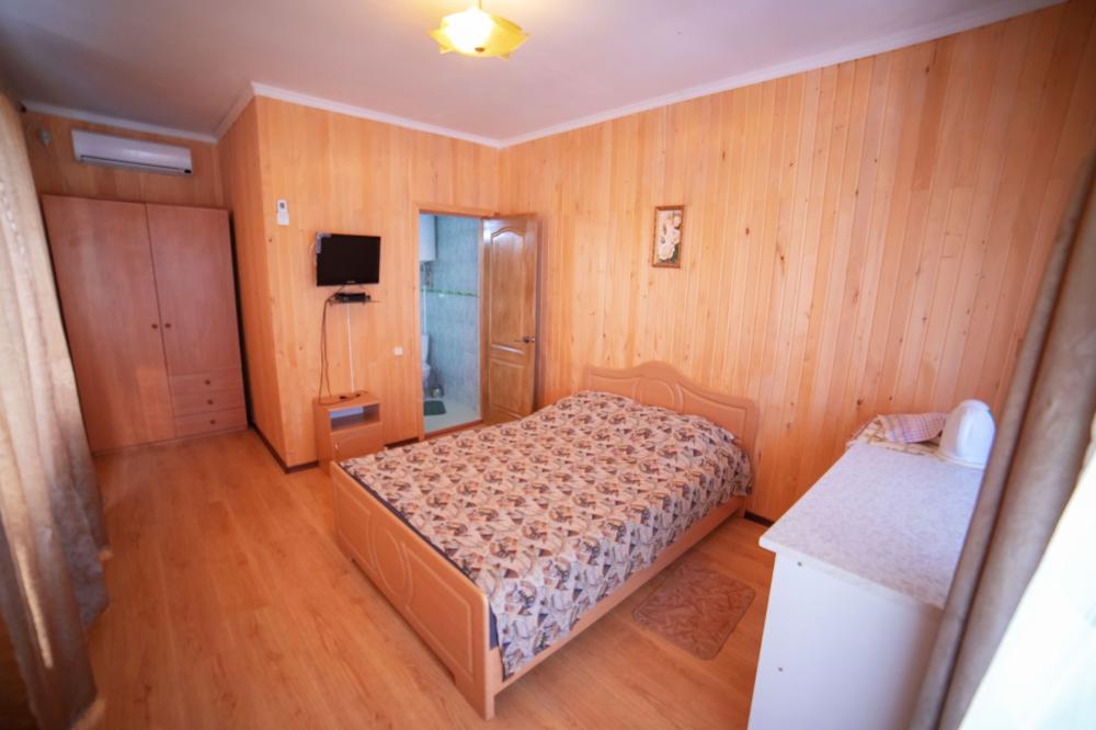 | Номер находиться на втором этаже, со всеми удобствами, отделан натуральным деревом. Возле номера балкон с выносным столиком и стульями, с которого хорошо видно море. В номере круглосуточно холодная и горячая вода, кондиционер, холодильник, микроволновая печь, телевизор, эл чайник, посуда. Стоимость доп места 700 рублей в сутки. |