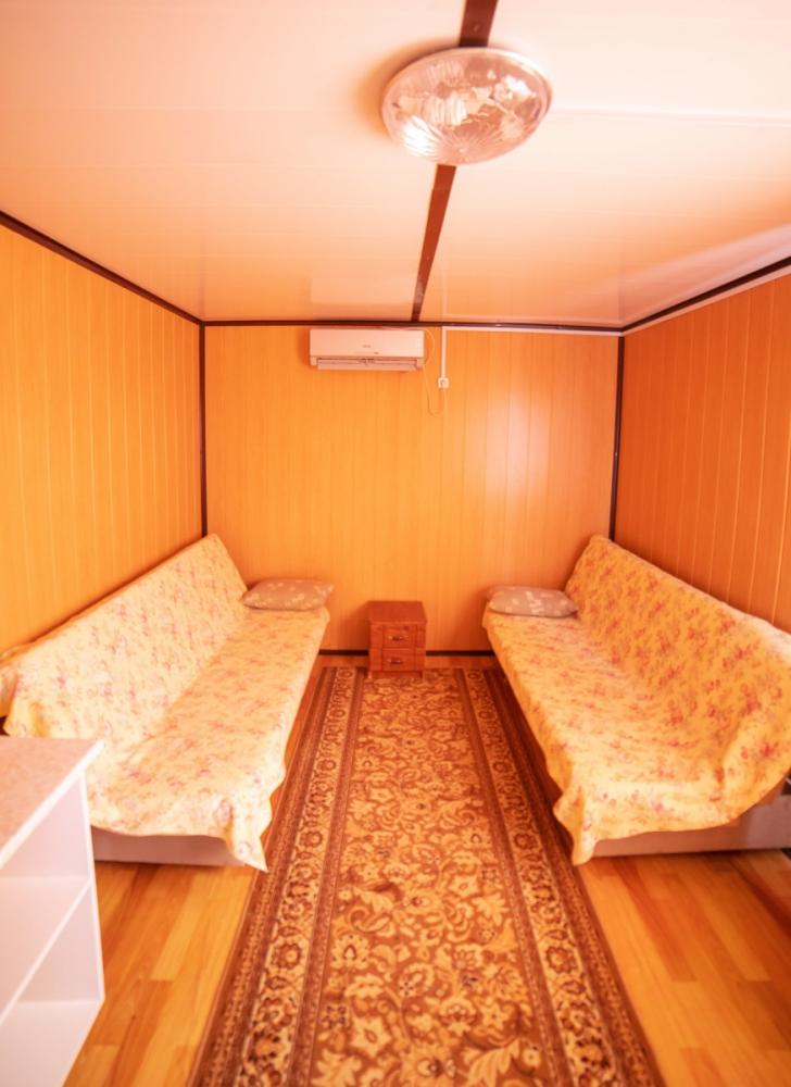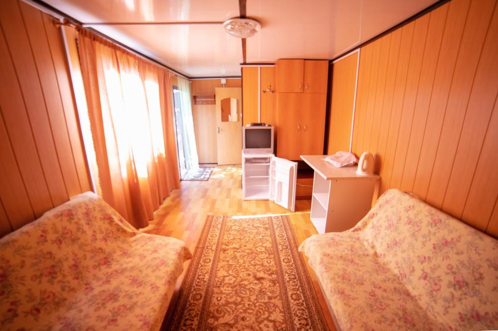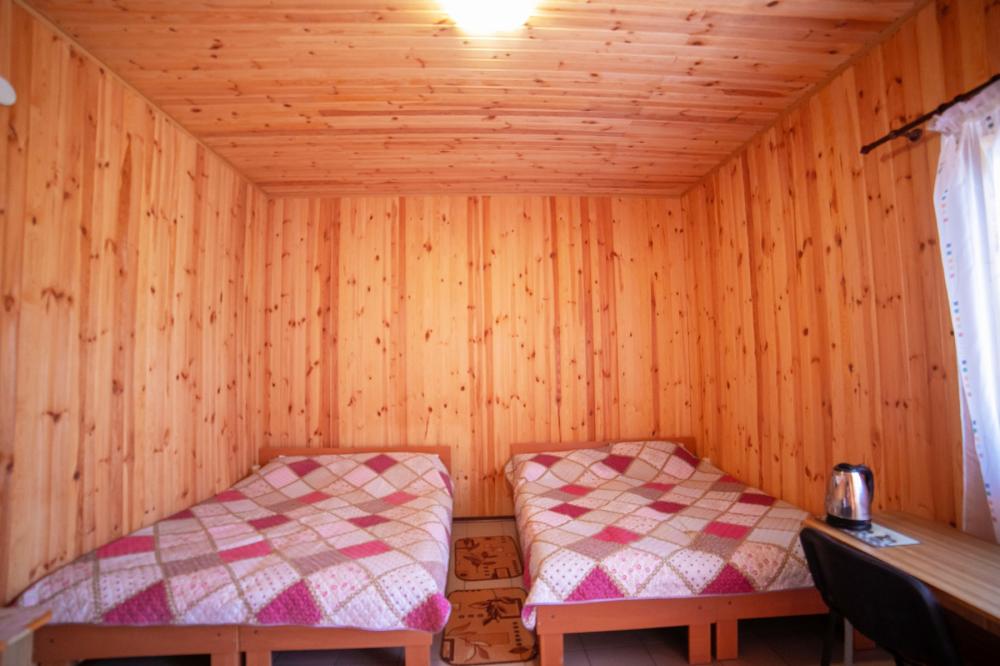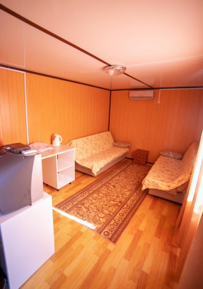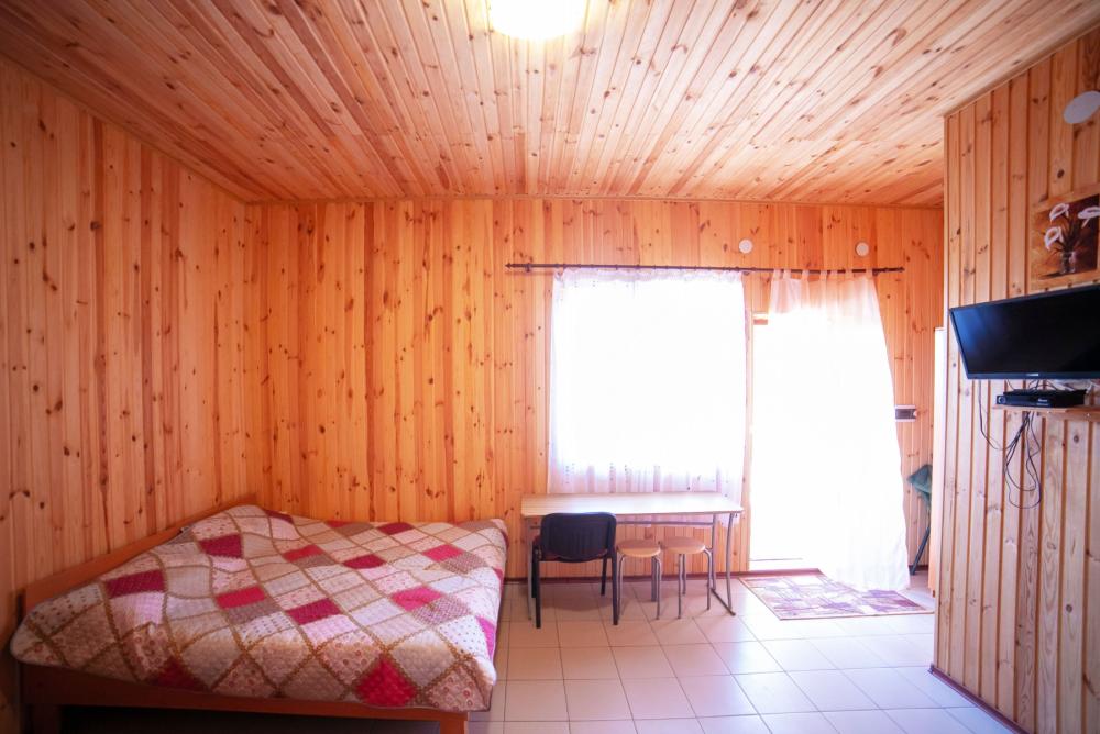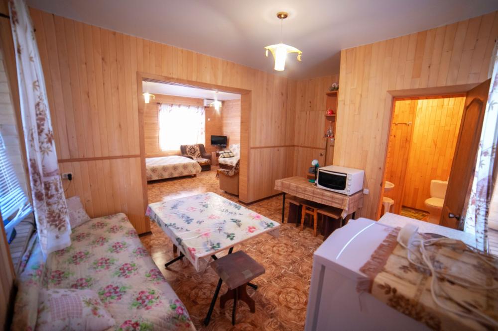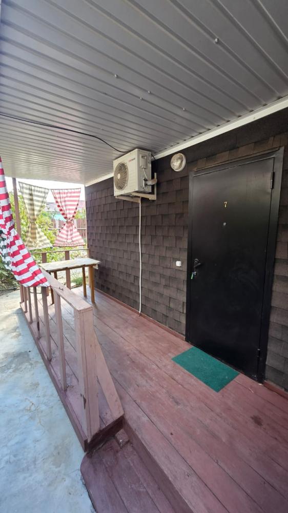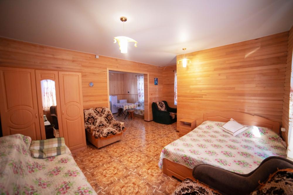 | Номер находиться на отдельной территории, возле номера площадка для отдыха, расположен номер на первом этаже со всеми удобствами. Номер отделан натуральным деревом. В номере круглосуточно холодная и горячая вода, кондиционер, холодильник, микроволновая печь, телевизор, эл чайник, посуда. Таких номеров на данной территории 2, отличаются они только конфигурацией спальных мест. Возле каждого номера есть терраса для отдыха. В одном номере есть возможность доп места. Стоимость доп места 700 рублей в сутки. |