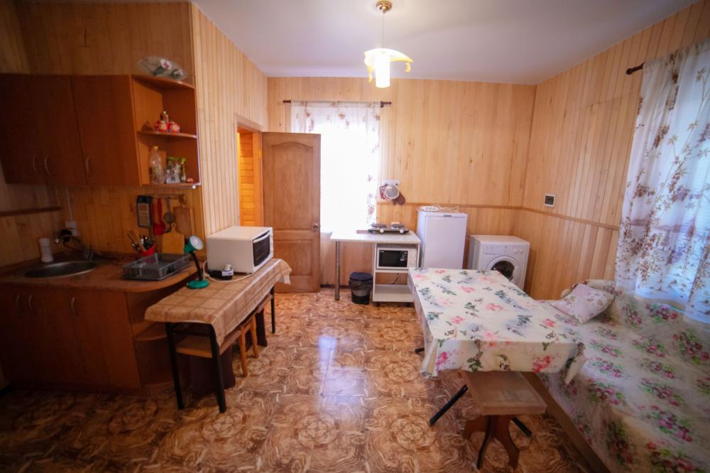 | Шестиместный номер-студия находится на первом этаже, общей площадью 55 м2, со всеми удобствами, с полноценной кухней и стиральной машиной, с видом на виноградник. Возле номера беседка со столиком и стульями для отдыха. Номер отделан деревом. В номере круглосуточно холодная и горячая вода, кондиционер, холодильник, микроволновая печь, телевизор, эл чайник, посуда. Есть возможность двух доп мест. Стоимость доп места 500 рублей в сутки. |