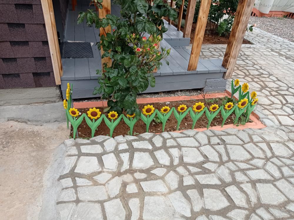 | Трехместный номер находится на первом этаже, со всеми удобствами, отделан натуральным деревом с видом на виноградник. Возле номера терраса со столом и стульями для отдыха. В номере круглосуточно холодная и горячая вода, кондиционер, холодильник, микроволновая печь, телевизор, эл чайник, посуда. Есть возможность доп места, стоимость доп места 700 рублей в сутки. |